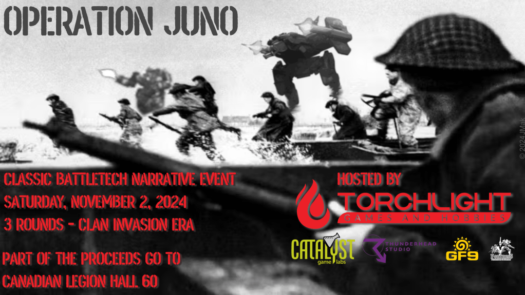 My partner conceived of a Battletech event that would commemorate the Canadian troops’ D-Day landings in Normandy, on Juno Beach. He wanted to make a Battletech tournament where players would face each other and re-enact the battle, but with battle mechs instead of 1944 forces.
